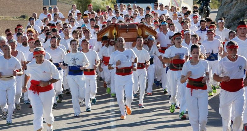 Cada lunes de Pentecostés decenas de mozos y no tan mozos de la comarca de la Sierra de Alcaraz cargan a hombros el Cristo y lo trasladan corriendo los 15 kilómetros que separan la aldea de Sahuco y la localidad de Peñas de San Pedro.