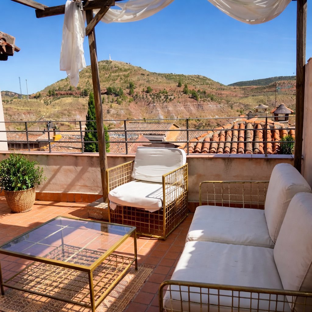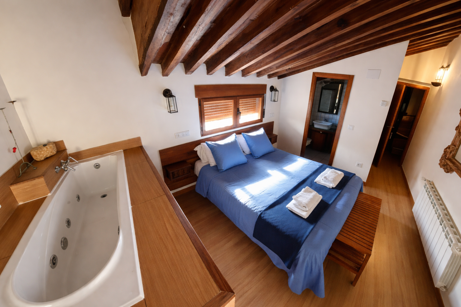 Apartamento rural Morada de Doña Oliva. Casa rural en Albacete, en Alcaraz, suite rural de 1 dormitorio para 2 personas en el centro de Alcaraz. Destaca su bañera de hidromasaje sobre la cama. Sala con cocina modular. Terraza.